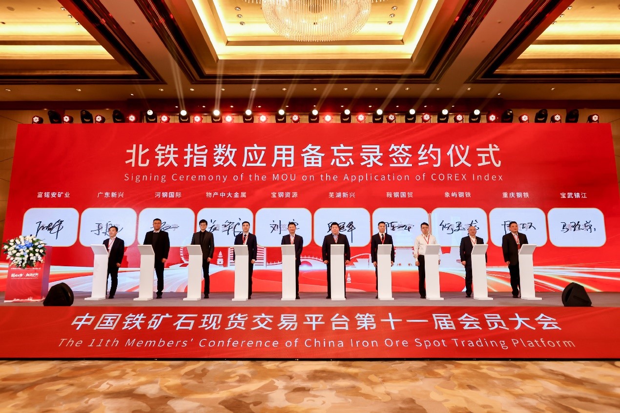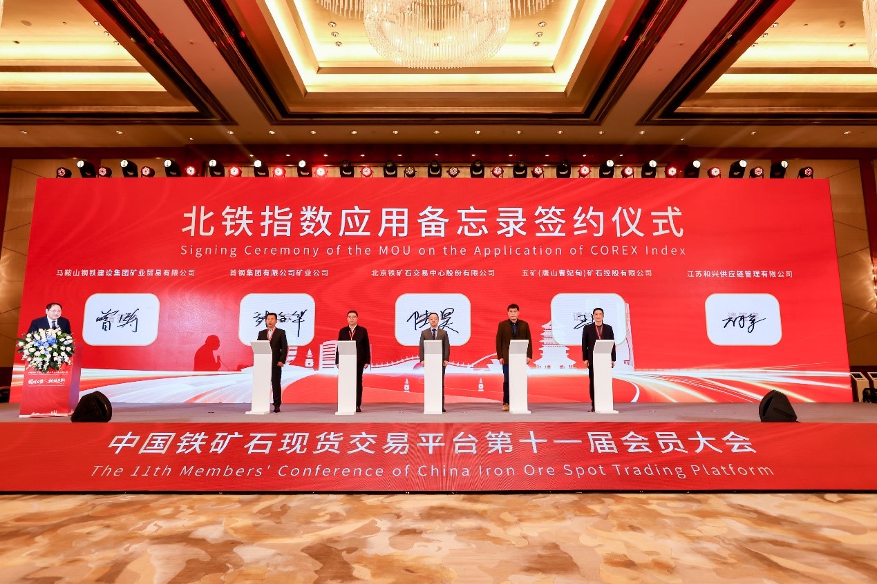 2025年12月18日,在中國鐵礦石現(xiàn)貨交易平臺(tái)(簡稱“平臺(tái)”)第十一屆會(huì)員大會(huì)上,5組、共10家鋼鐵和貿(mào)易企業(yè)簽署備忘錄,逐步在鐵礦石貿(mào)易中采用北京鐵礦石交易中心發(fā)布的港口現(xiàn)貨價(jià)格指數(shù)(以下簡稱“北鐵指數(shù)”)作為結(jié)算依據(jù)。同時(shí),為推動(dòng)指數(shù)在國產(chǎn)礦和混礦交易中的應(yīng)用,會(huì)上北鐵中心和4家國內(nèi)礦石生產(chǎn)企業(yè)及混礦企業(yè)簽署了應(yīng)用備忘錄。