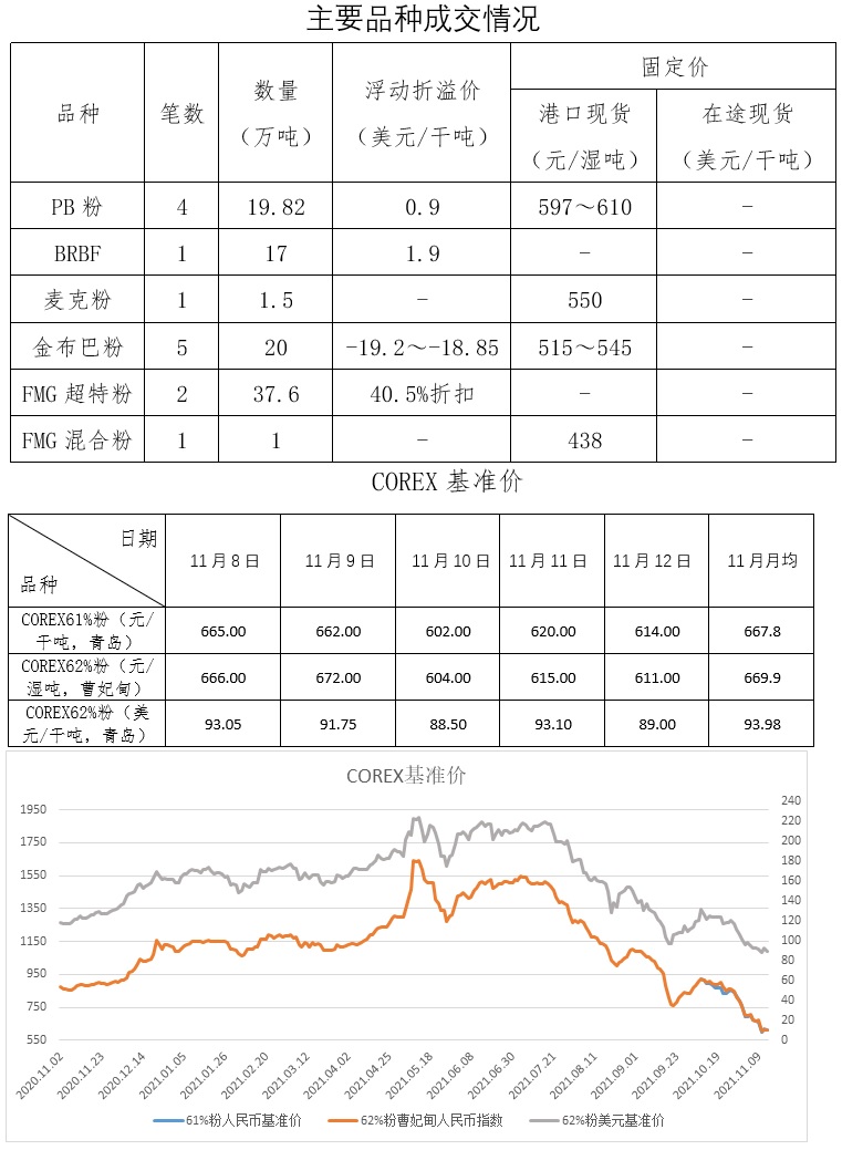 11月8日-11月12日成交25筆共156.93萬噸,其中在途7筆138.6萬噸,港口18筆18.33萬噸。